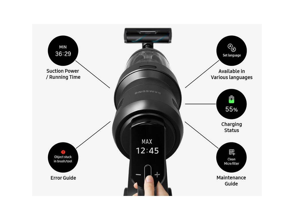 Digitálny LCD displej vám pomôže zistiť moemntálny sací výkon, dobu prevádzky, zostávajúcu kapacitu batérie a upozorní vás na možné problémy. Dokonca vás vie upozorniť na prichádzajúci hovor.