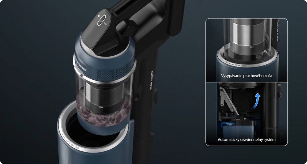 - Automatická vysýpacia stanica eliminuje potrebu ručného vyprázdňovania a minimalizuje kontakt s prachom